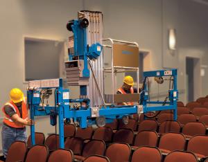 The Genie® Super-Straddle™ option allows you to use your aerial work platform in areas you never thought possible. The Super-Straddle feature provides up to 4 ft (1.22 m) of vertical clearance over fixed obstacles. Easily access light bulbs, ceiling panels or other maintenance tasks above permanent seating, stairwells and other obstructions. End frames adjust so the Super-Straddle option can be used on slopes of up to 6˚ –perfect for auditoriums and theaters.